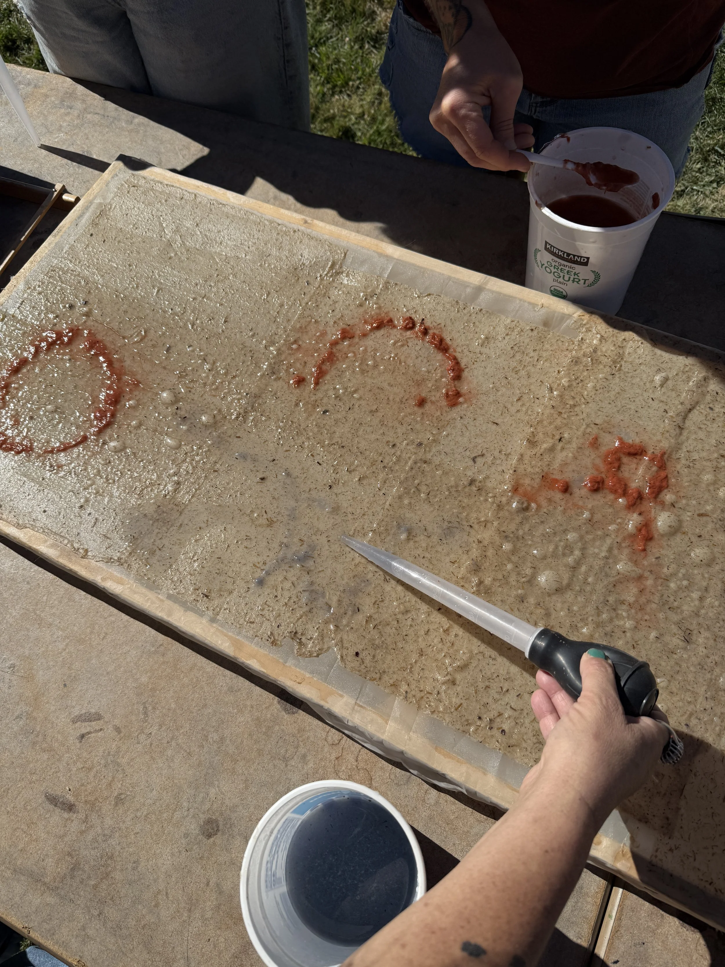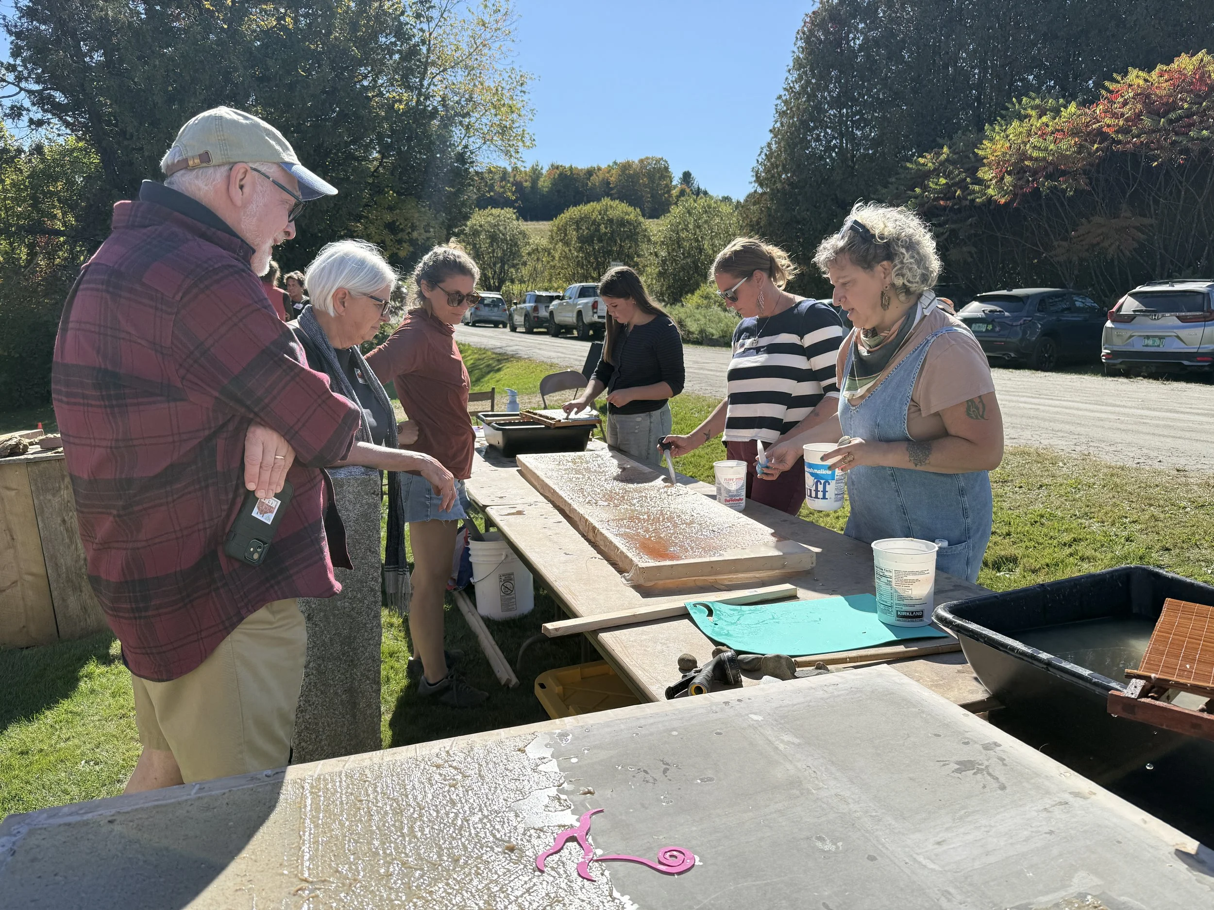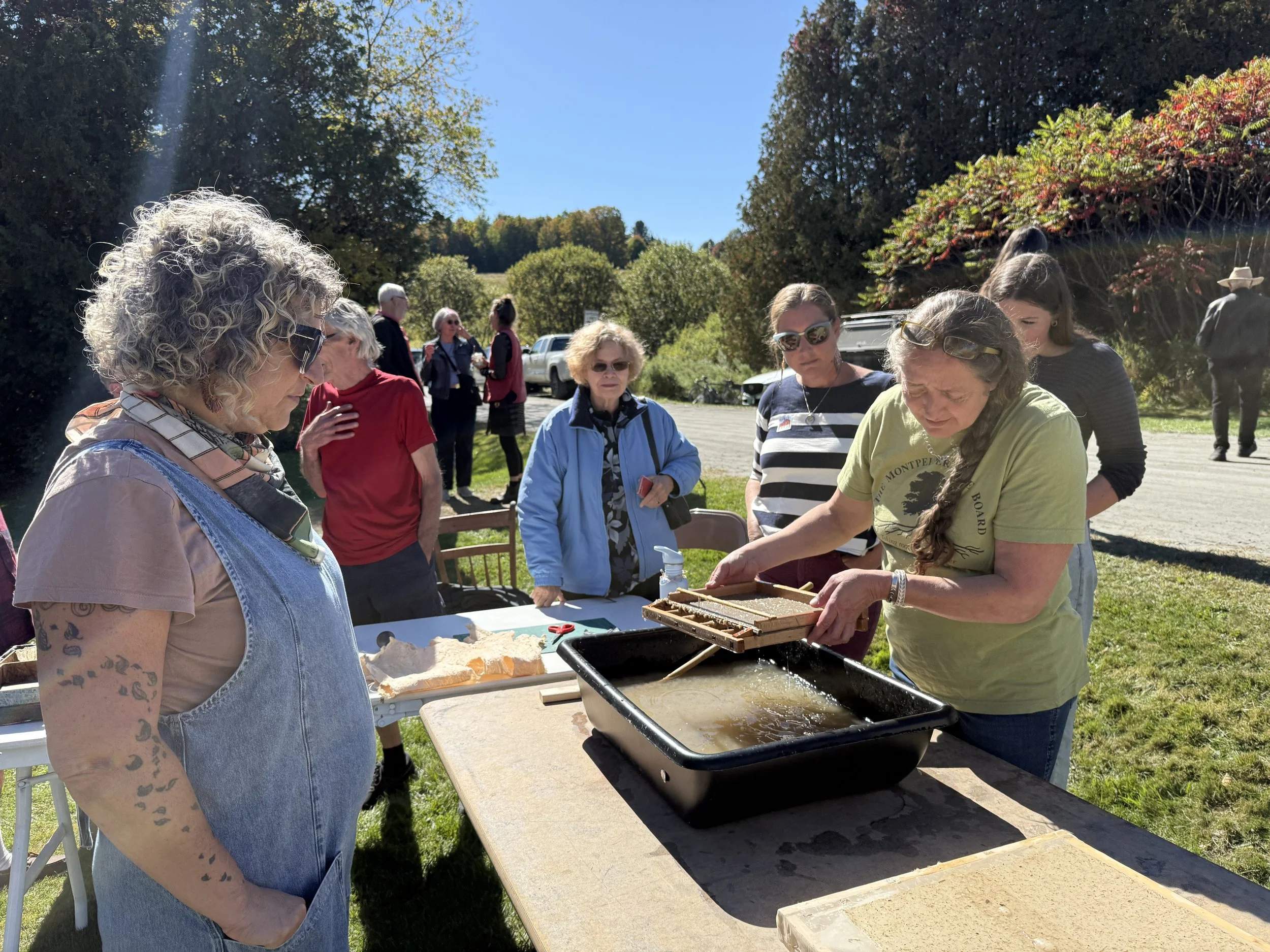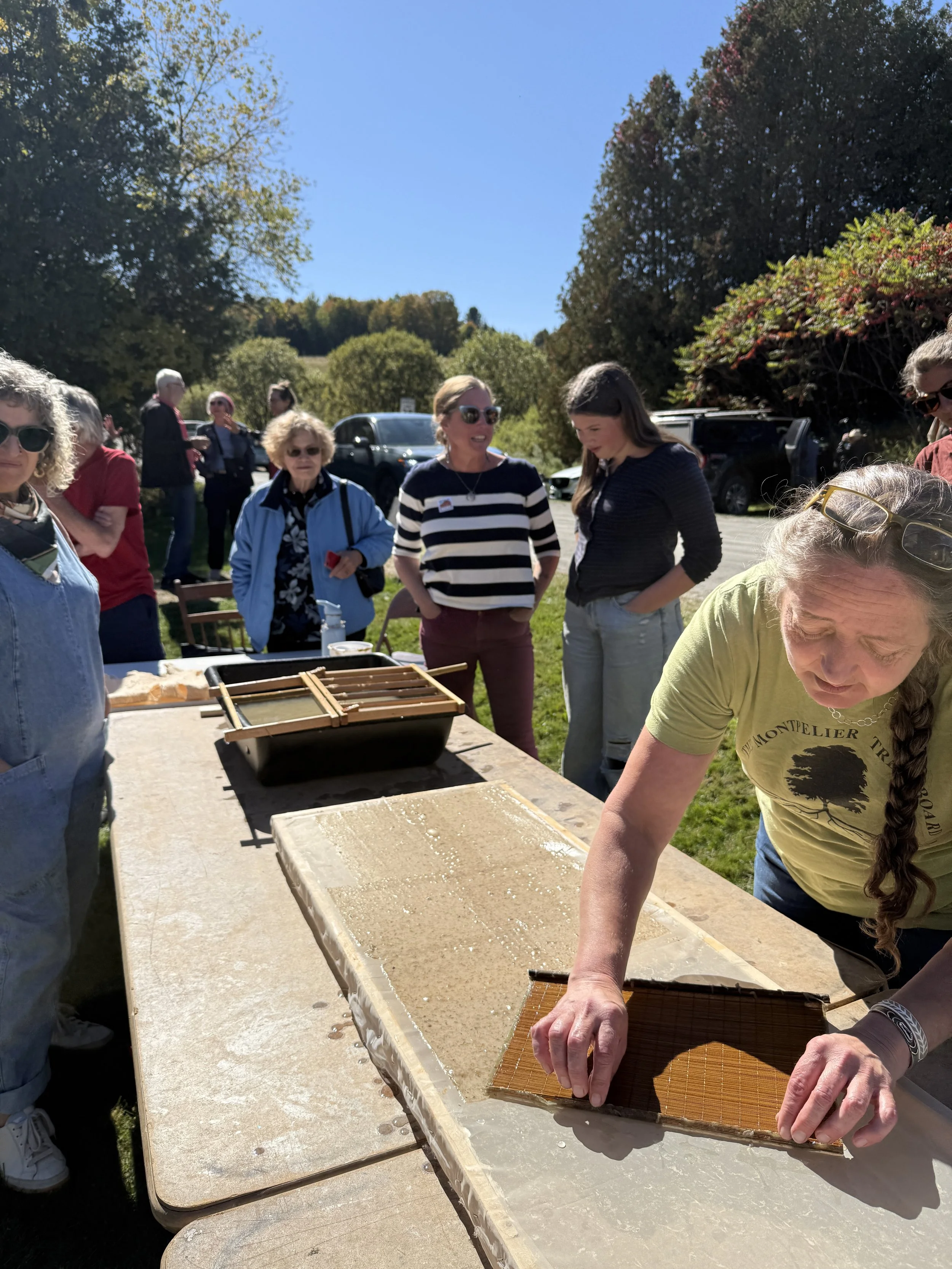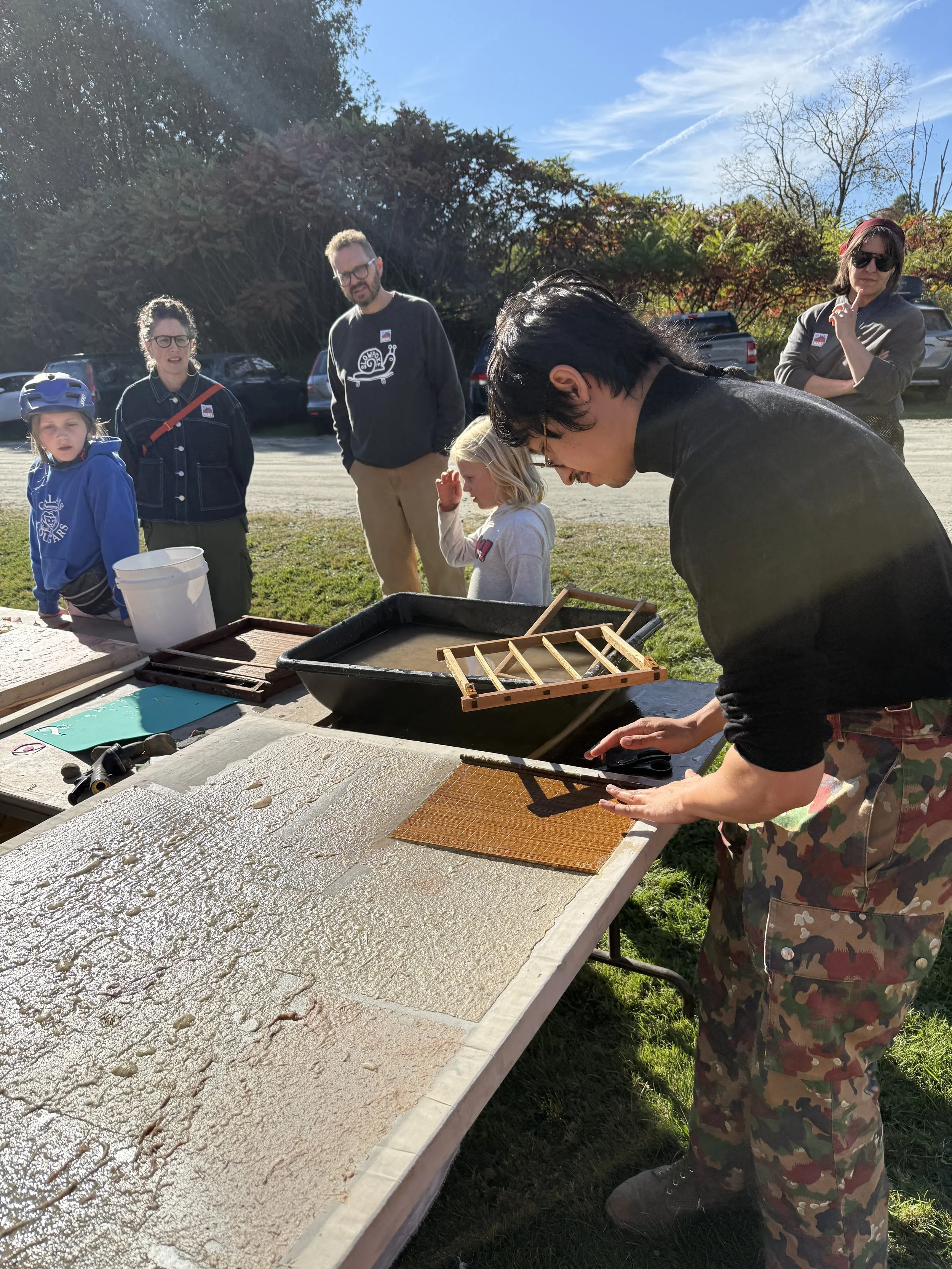 Participants made handmade paper and experiments with local materials including locally collected Milkweed and Eastern paper mulberry.