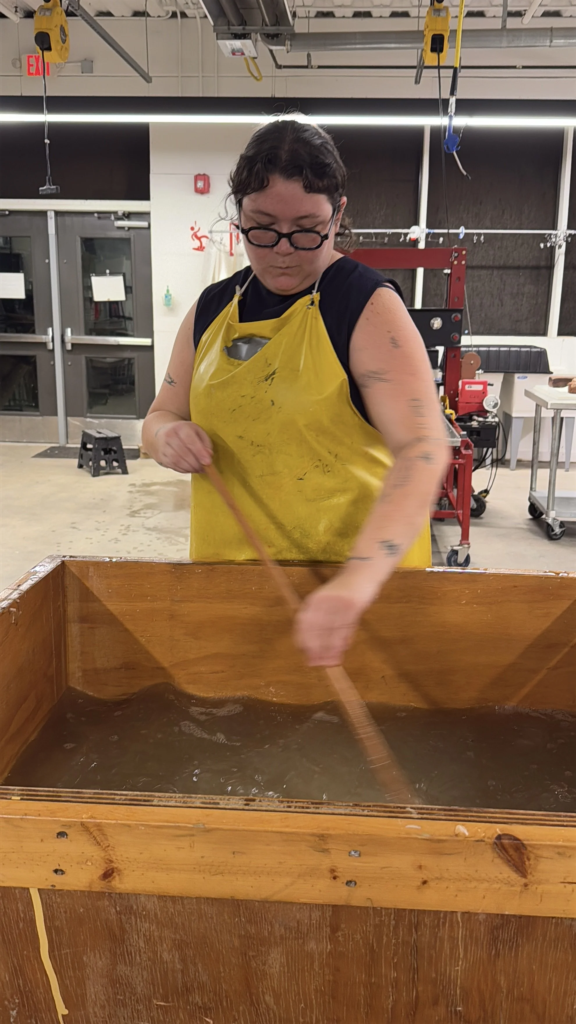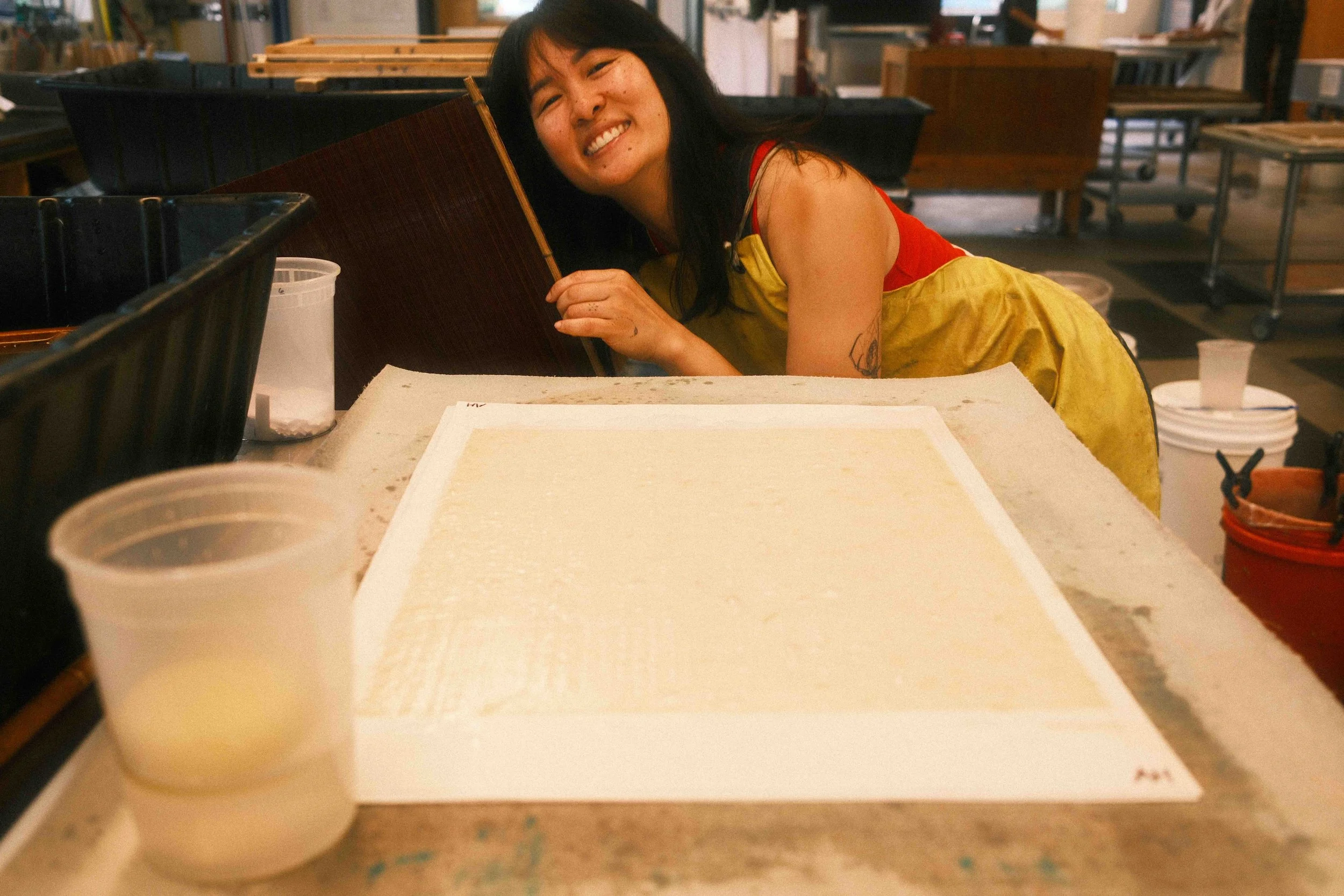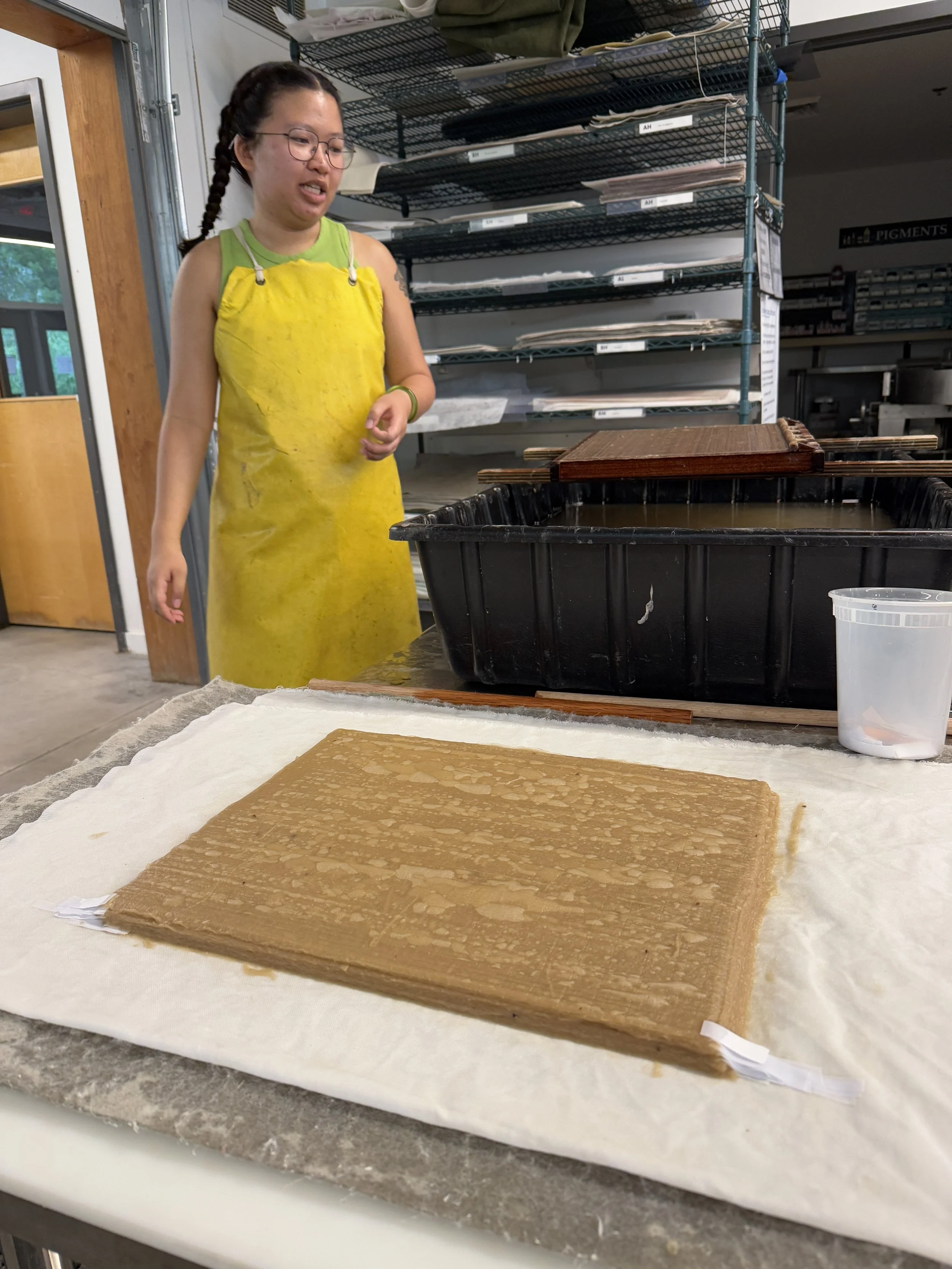 This is a public workshop open to the community to participate in Vietnamese papermaking through a large-scale collaborative piece. Participants worked together in the papermaking, watermarking, and pulp painting process to create a collective piece. Participants will experiment using local materials for the papermaking process using milkweed, hemp, regional paper mulberry, and recycled cotton rag.