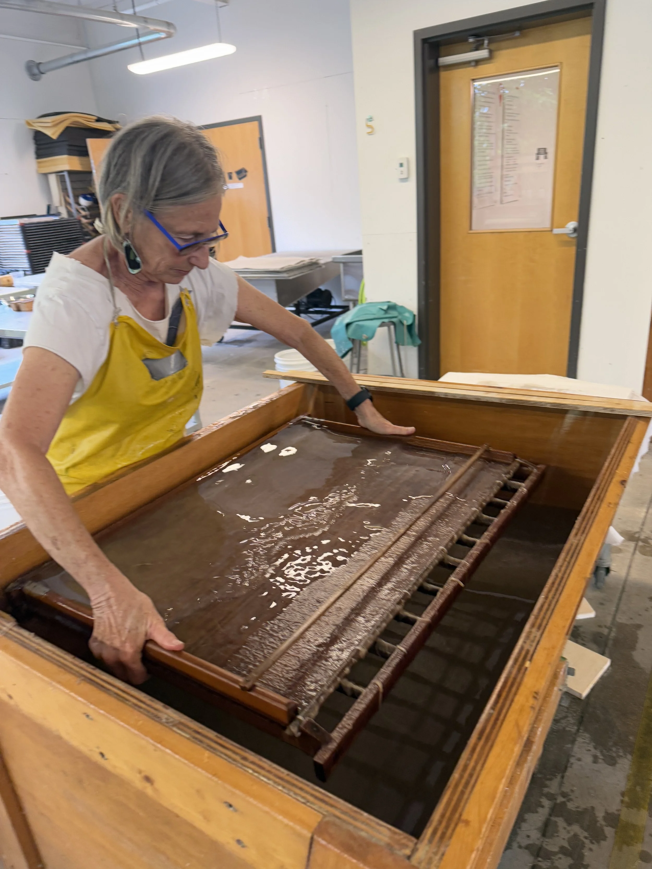 The first ever Vietnamese papermaking workshop conducted at Penland School of Crafts with fully eqipped studio with Vietnamese traditional equipment using the liềm seo (bamboo woven screen) made from master screen weaver Thài Đô Duy and the khung seo (two-part wooden frame) made from master woodworker Nguyễn Công Hoàng.
